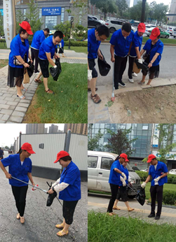 第二小組環境整治組,共分4個小組,活動開始前,我們把垃圾袋,手套,長柄夾,笤帚、簸箕等勞動工具分配攜帶好,然后從世紀大道至奧林匹克花園什字分為相向2隊,每隊分為南北路2組,在各小組組長帶領下,組員們頂著38度的高溫,不怕熱不怕苦不怕累,積極開展環境整治、撿拾分包路段垃圾等工作,并督促配合清掃人員、綠化人員,對所分包路段的綠籬、草坪、樹坑內垃圾的清理和修剪,用我們的行動為咸陽城市創建貢獻力量。