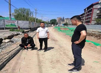 渭陽東路施工改造現場,烈日下巡檢人員穿梭在溝道街邊;